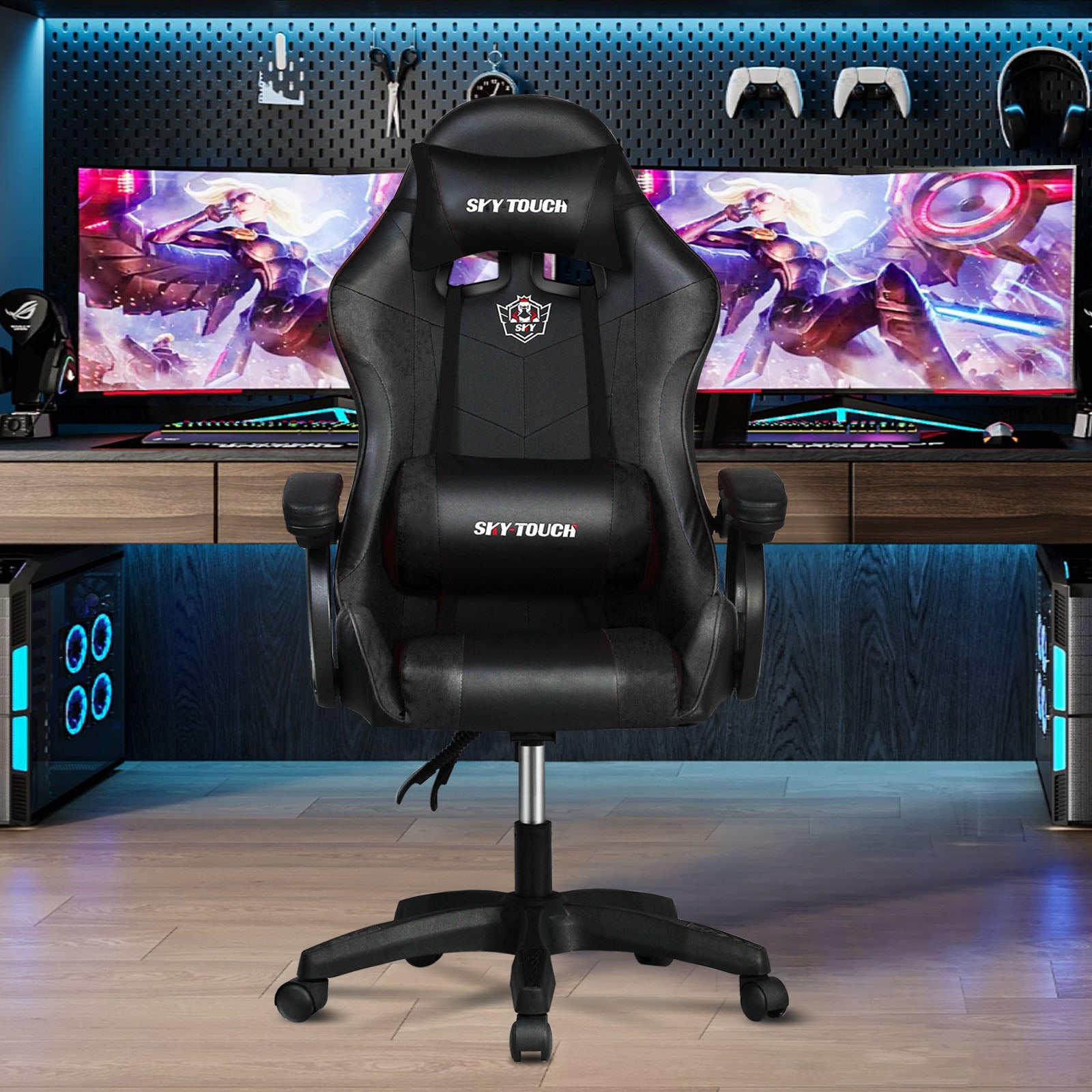 SKY-TOUCH Gaming Chair,Adjustable Computer Chair Pc Office Pu Leather High Back, Ergonomic design Lumbar Support,Comfortable Armrest Headrest