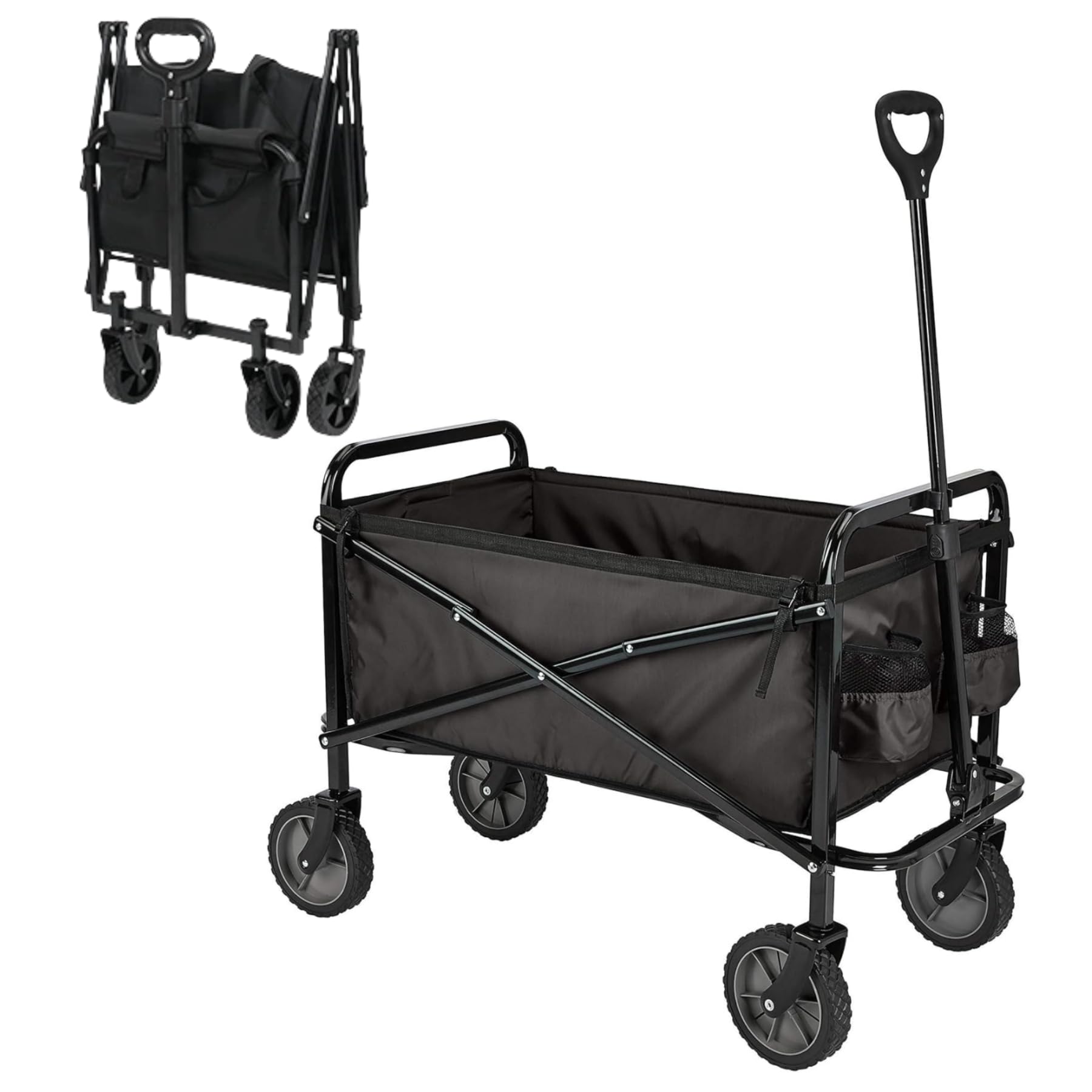 SKY-TOUCH Garden Cart Folding Trolley Cart Outdoor Wagon Collapsible with Removable Fabric Festival Garden Camping Picnic Cart Supports Max 100kg Portable Transport Trailer (Black)