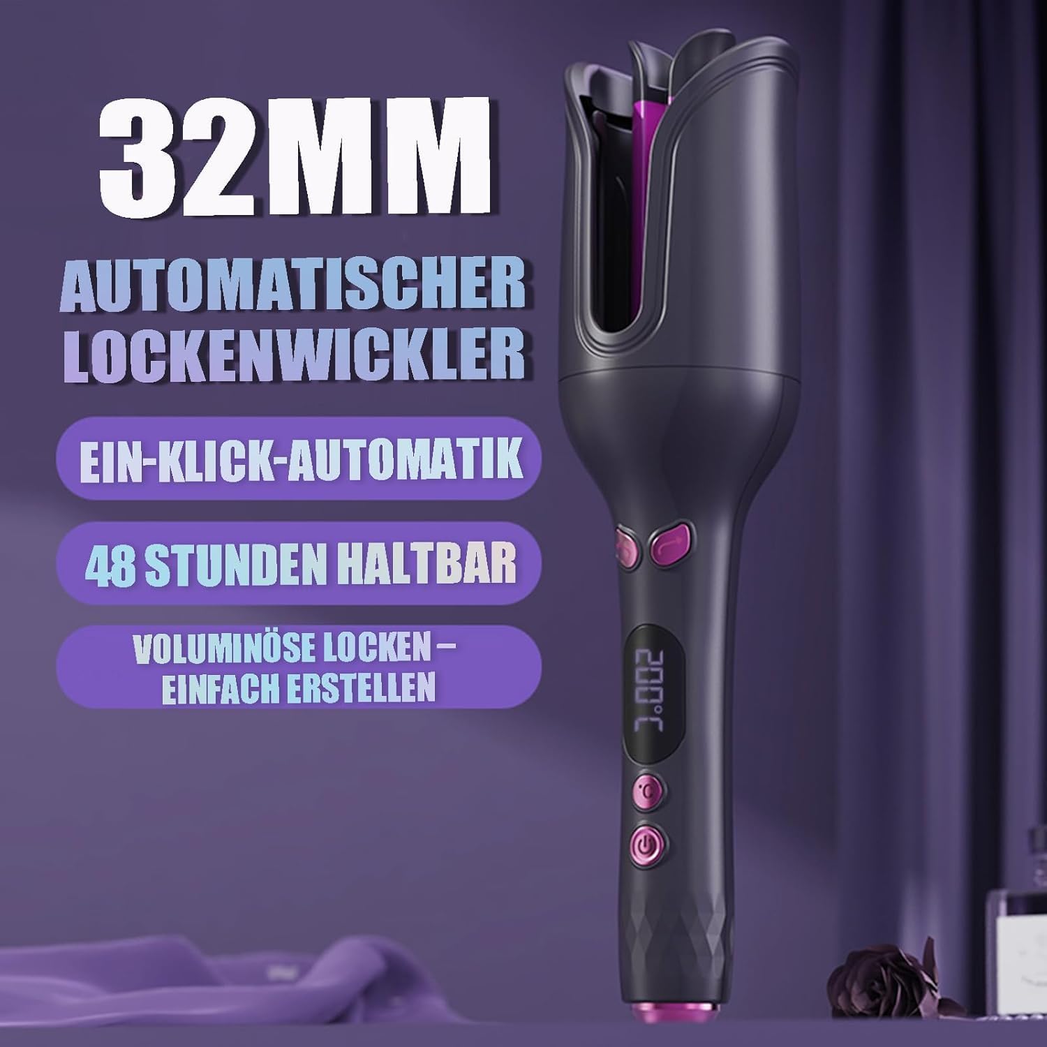 - Effortless Automatic Curling“Achieve beautiful, even curls with ease using the innovative 32mm automatic curling iron. Featuring an automatic retraction function, this styling tool effortlessly creates flawless curls without the hassle of manual wrapping