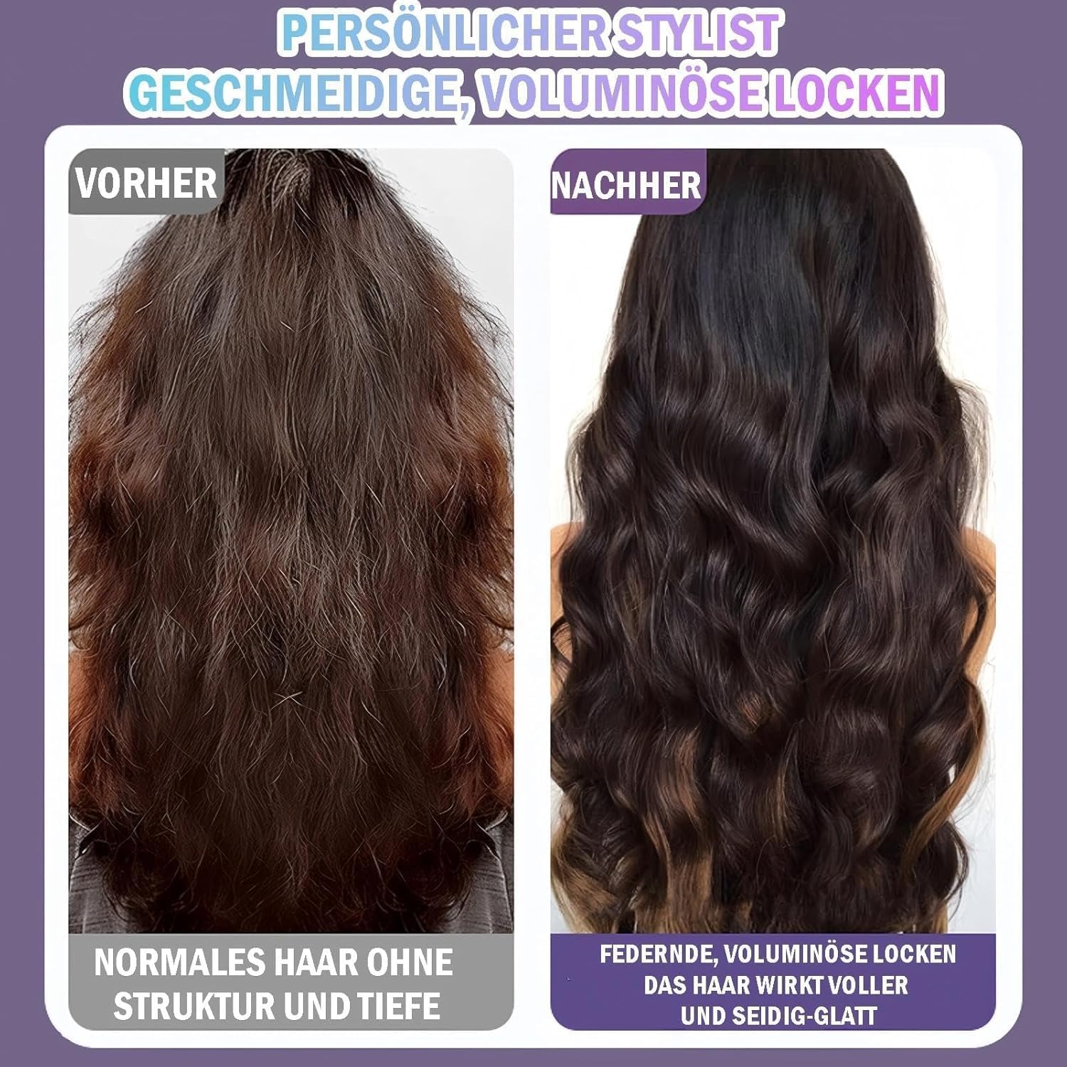 - Lightweight & User-Friendly:Weighing just 410g, this curling iron is comfortable to handle for styling sessions, and its elegant gray-purple design adds a touch of sophistication to your beauty routine. For sensitive hair, we recommend starting at 150°C for gentle styling