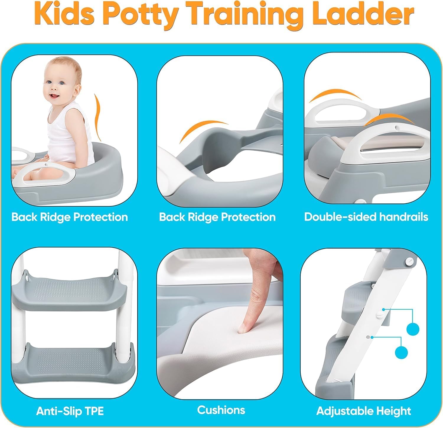- Sturdy Construction: Training potty for toddlers designed with anti-slip pads and a ladder to make sure that whilst your children are using the toilet ladder, they aren't at risk of slipping or falling. The anti-slip ladder also helps kids climb confidently up and down the seat in no time.