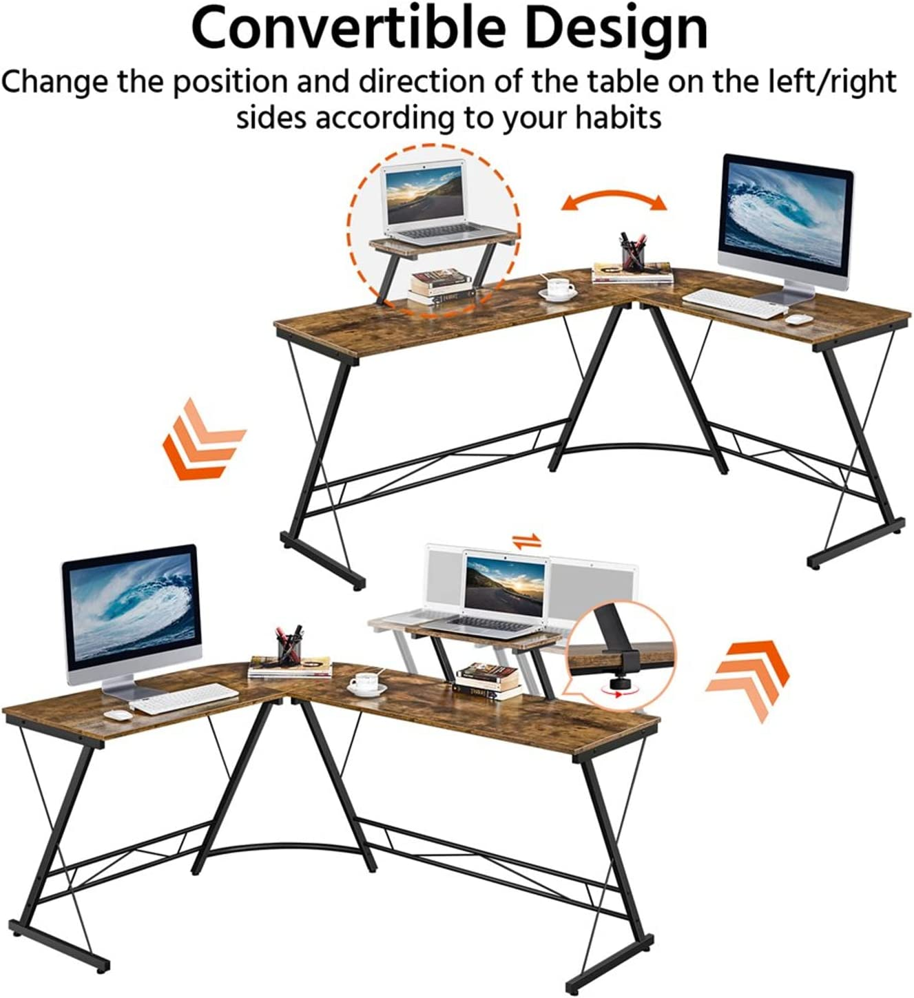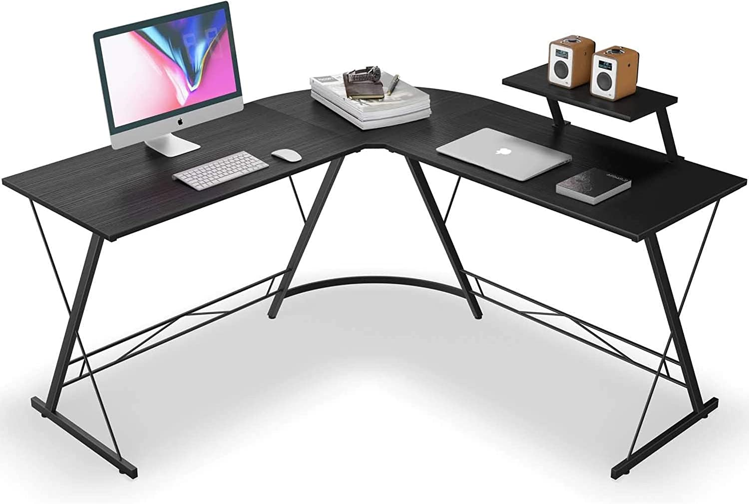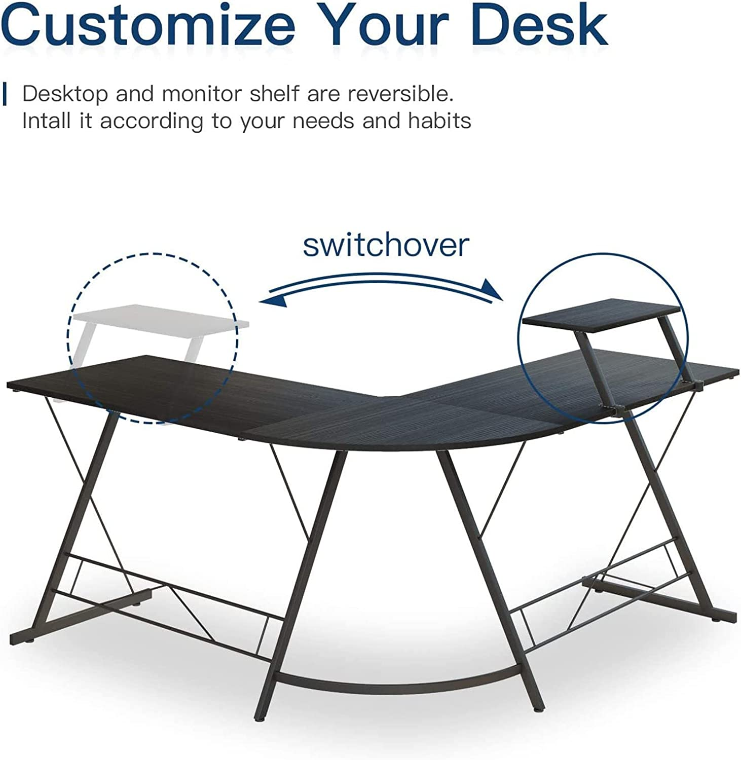 Wide Space with L Shaped Design: Made of sleek Wide desktop with a monitor shelf attached. You will have plenty of surface space for writing, computer work and other home office activities. Extra wide dismountable monitor shelf gives you extra layer of storage space, plenty of space for dual/trio monitors. Sturdy Frame with High Quality Material: Thick metal frames & Extra metal brackets ensure the stability of the desk. Desktop made of Particle Board, is waterproof, anti-scratch, and very easy to clean. Desk frame is made of heavy duty powder coated steel which ensures the stability and durability, 1.57" by 0.7" bar width makes it strong enough to support heavy duty parcels. Adjustable leveling studs are included to keep the desk stable even on uneven floor. Easy to Assemble & Switchable Sides: This elegant designed L shaped desk with the shelf can be placed on either side to fit different work habits(reversible). A detailed instruction manual and a pack of assembly tools are provided. Ample Space on & under the Desk: Ample bottom space allows you to rest your legs and do some stretches after a long time's hard work or anytime you feel tired. L shaped wide desktop provides enough space to keep multiple computers, laptops and scatter things around. Customer Service: Your satisfaction is our first priority – We’ve got you covered anytime you have any issue regarding our product quality or any problem during use. Easy and fast replacement is guaranteed. |