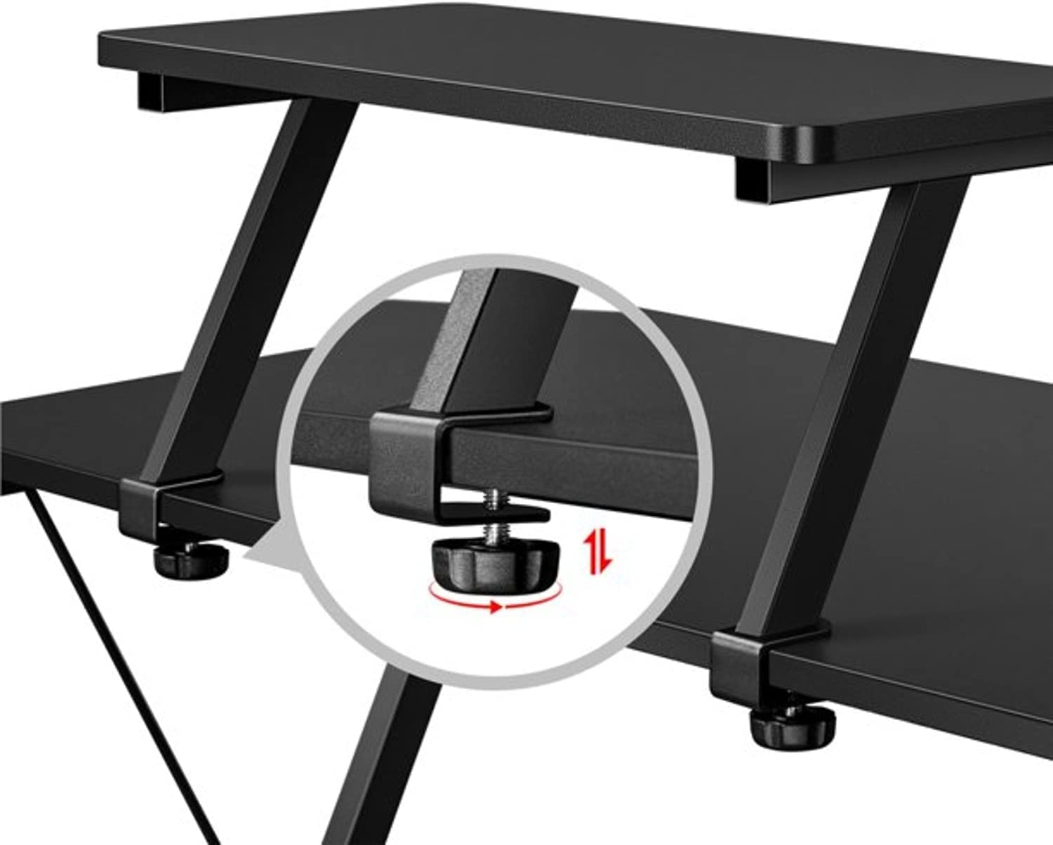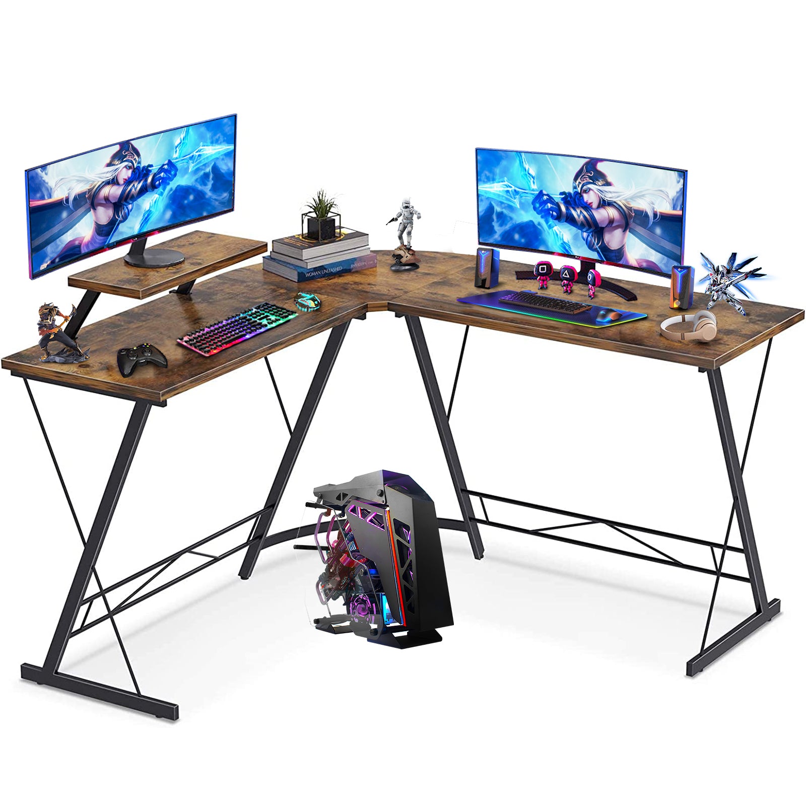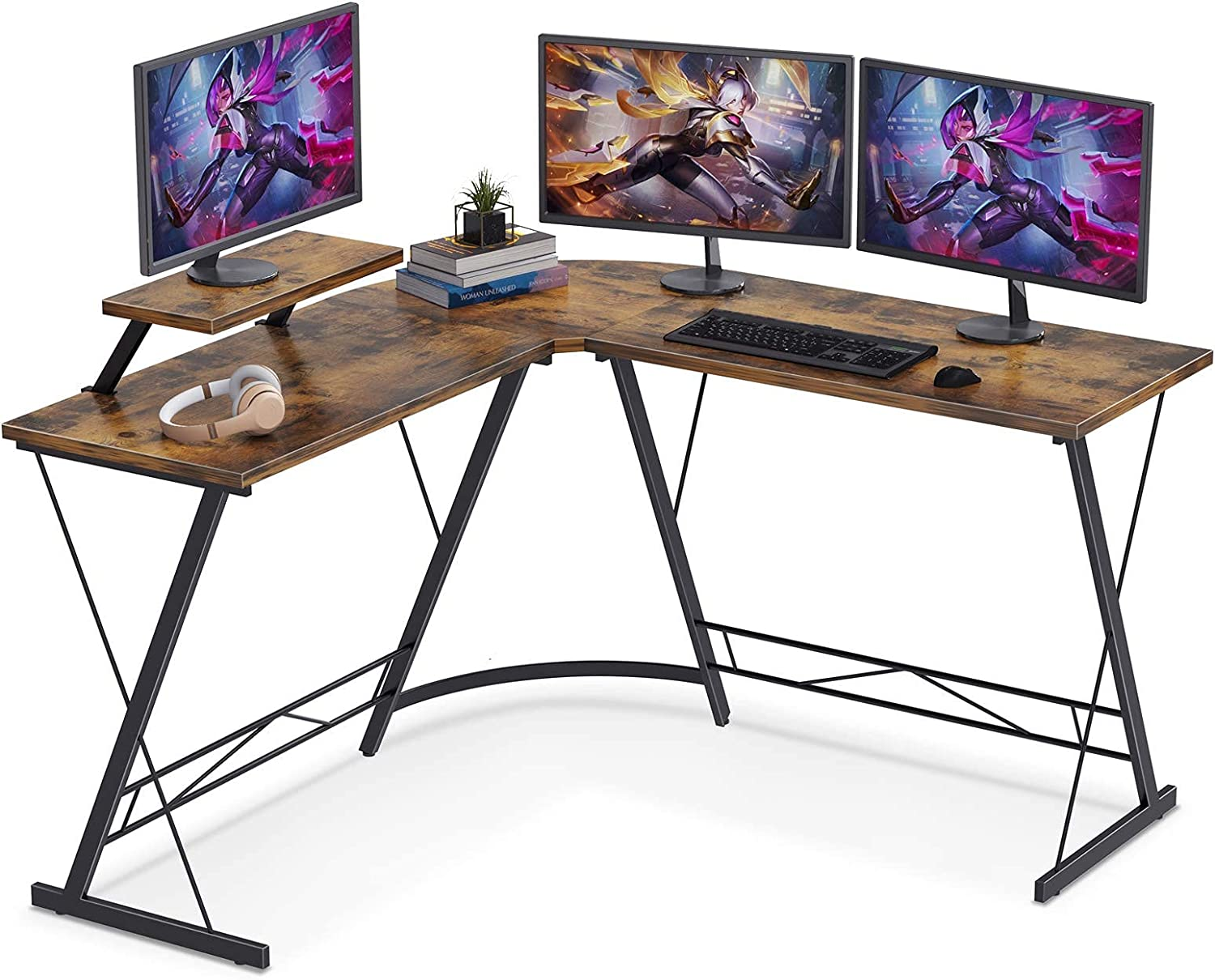 Wide Space with L Shaped Design: Made of sleek Wide desktop with a monitor shelf attached. You will have plenty of surface space for writing, computer work and other home office activities. Extra wide dismountable monitor shelf gives you extra layer of storage space, plenty of space for dual/trio monitors. Sturdy Frame with High Quality Material: Thick metal frames & Extra metal brackets ensure the stability of the desk. Desktop made of Particle Board, is waterproof, anti-scratch, and very easy to clean. Desk frame is made of heavy duty powder coated steel which ensures the stability and durability, 1.57" by 0.7" bar width makes it strong enough to support heavy duty parcels. Adjustable leveling studs are included to keep the desk stable even on uneven floor. Easy to Assemble & Switchable Sides: This elegant designed L shaped desk with the shelf can be placed on either side to fit different work habits(reversible). A detailed instruction manual and a pack of assembly tools are provided. Ample Space on & under the Desk: Ample bottom space allows you to rest your legs and do some stretches after a long time's hard work or anytime you feel tired. L shaped wide desktop provides enough space to keep multiple computers, laptops and scatter things around. Customer Service: Your satisfaction is our first priority – We’ve got you covered anytime you have any issue regarding our product quality or any problem during use. Easy and fast replacement is guaranteed. |