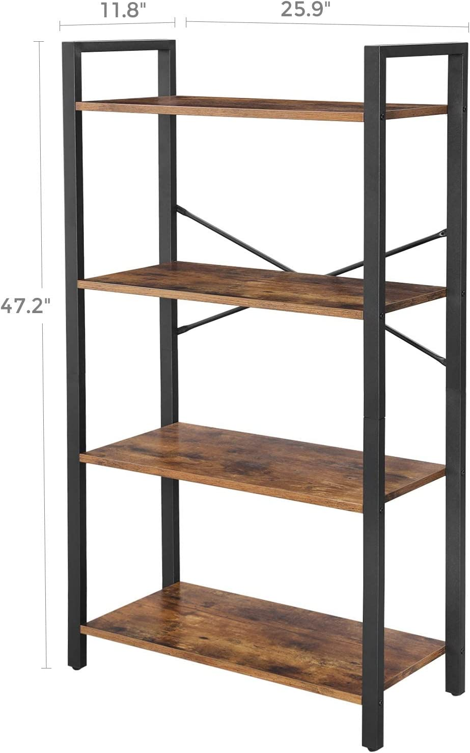 SKY-TOUCH Ladder Shelf, Bookshelf Rack 4 Tier Storage Organizer Shelf, Shelf Unit, Plant Stand, Living Room Bookcases, Industrial Bookshelf, for Bedroom, Kitchen, Office, Brown,47x26x12 inch
