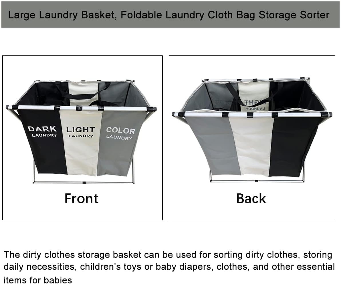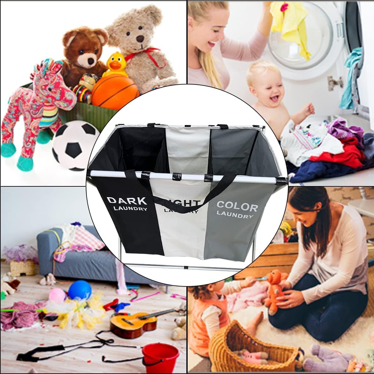 - Multi-purpose:The 3 Section Laundry Hamper Bag Organizer is suitable for storing blankets, dirty clothes, children's toys, pillows, yoga mats, towels, etc. The laundry basket organizer is frequent use in your bedroom, laundry room, bathroom, college, apartment or in the closet etc.