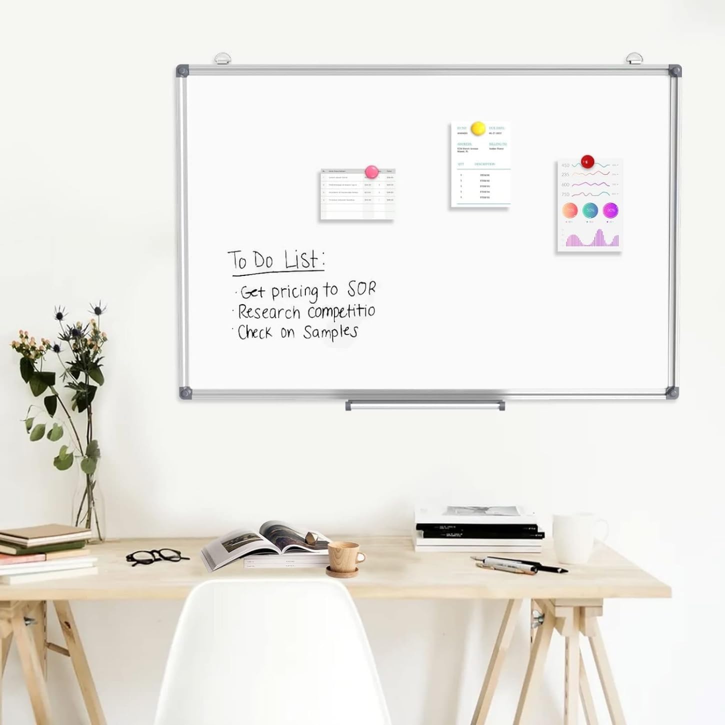 - 【Sturdy & Solid Design】High quality silver aluminum frame with 4 ABS plastic corners makes the magnetic whiteboard stronger than the ordinary wooden-frame whiteboard. Even if there is a collision, the aluminum frame will not damage easily. And the rounded ABS plastic corners will protect the safety of the users.