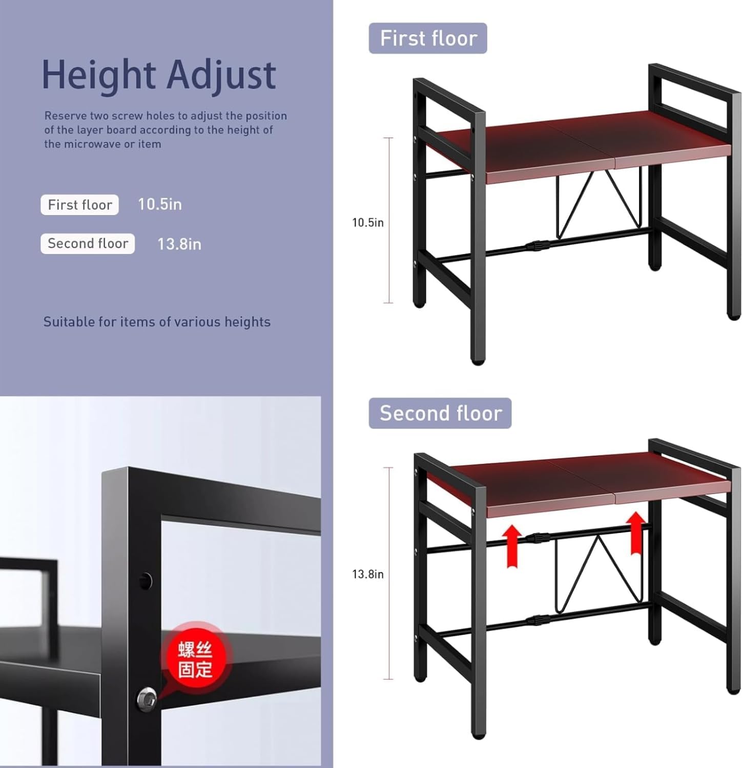 - Expandable Microwave Stand: The length of this microwave shelf stand can be adjusted from 15.7" to 23.6" (40cm to 60 cm),The height can also be adjusted according to the height of the microwave oven,You can adjust the size to store microwave ovens and other kitchen appliances,This can help you save more space in your kitchen.