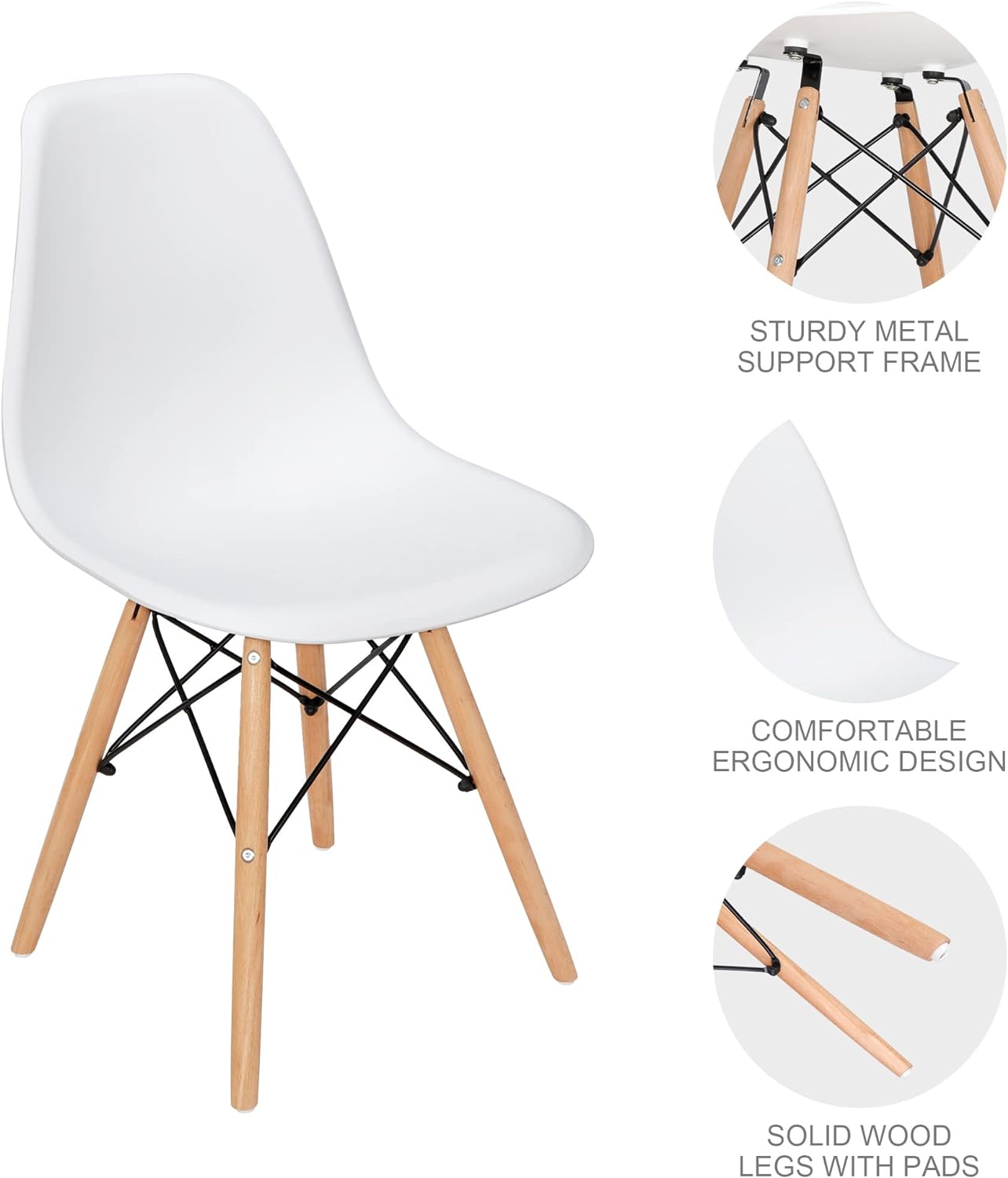 - Simple yet Stylish Modern Style:These upgraded white dinning chair set, a beautiful and elegant addition to any room. Design concept of mid-century style offers ergonomic curve seats and reasonable height backrest to fit your body better when sitting. Leads you to an easy conversation with more comfortable to enjoy your time