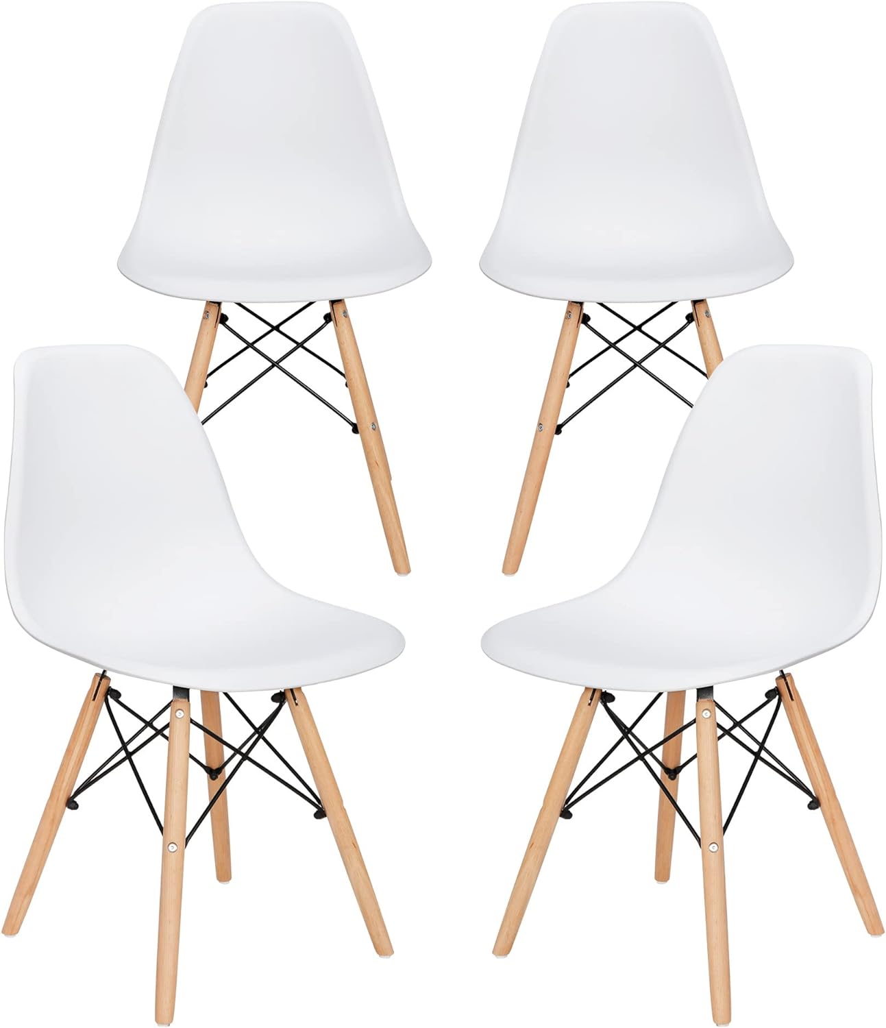 - Metal Frame & Non-Slip Feet:This upgraded dinning chairs set is made of high quality PP material molded-in-one chair shell, sturdy iron support frame and solid beech wood legs with charming matte finished white color, durable for long time usage in daily. Featured non-slip feet pads offer extra stability and prevent floor from scratching. 4 chairs combo help you to complete purchasing at once with lower price