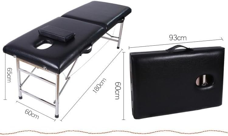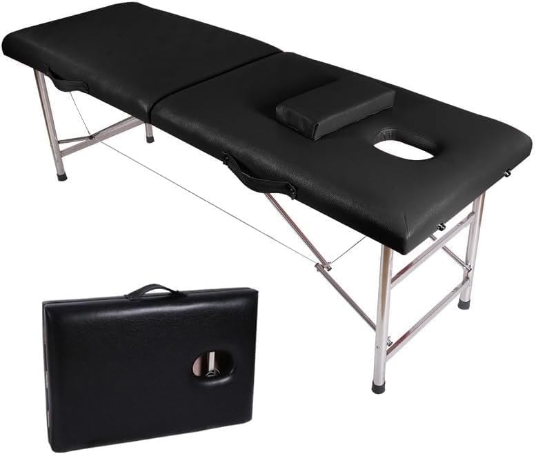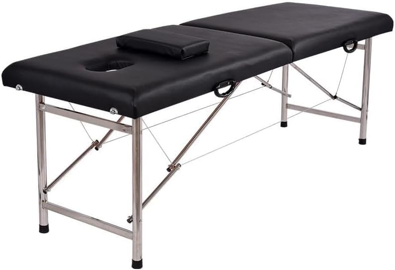 SKY-TOUCH Portable Massage Bed : Foldable Massage Tables with Pillow SPA Bed with Stainless Steel Frame 2 Fold Black for SPA Salon Tattoo Massage Therapeutic Treatment Black