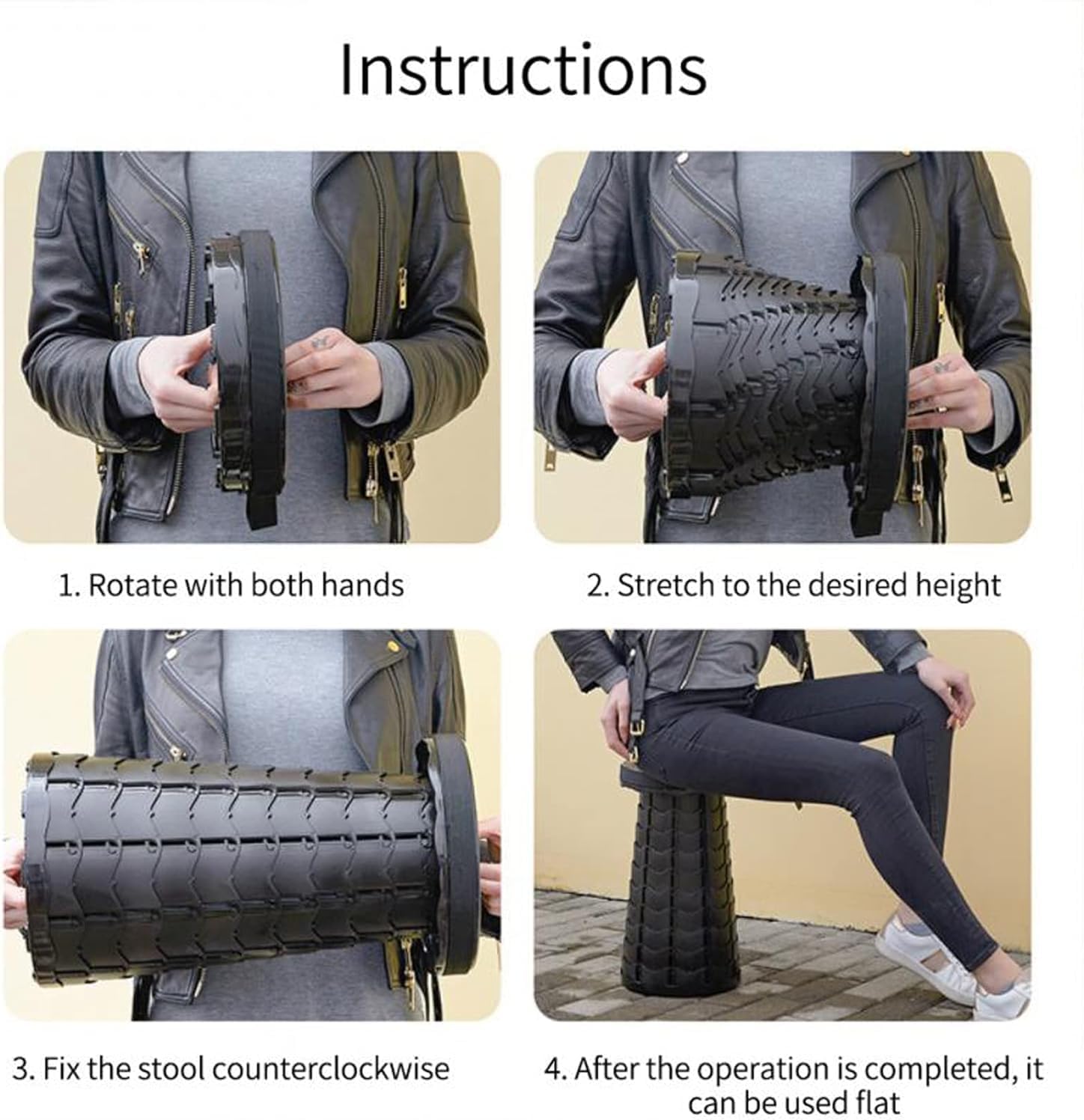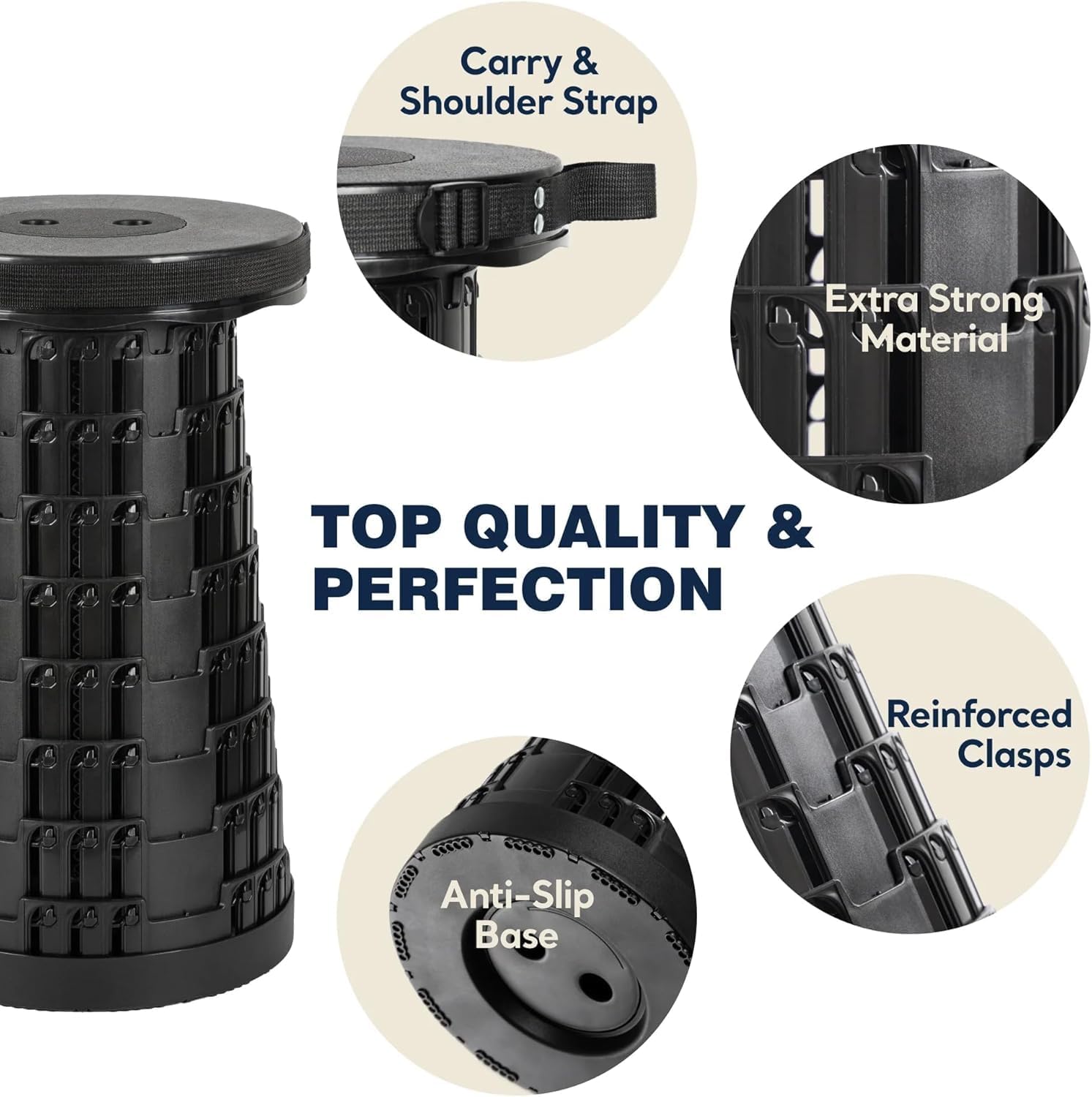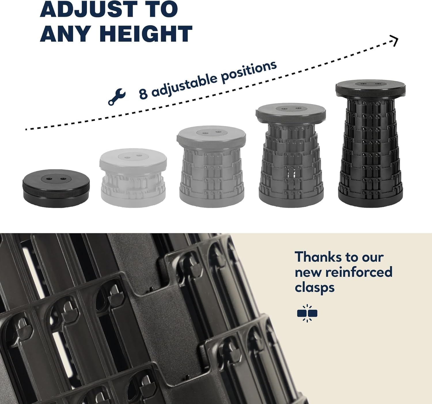 SKY-TOUCH Portable Telescopic folding Camping Stool,Load 400lbs, Retractable Adjustable Height Collapsible Stool, Lightweight Plastic Stool Indoor Outdoors Camping Hiking Travel BBQ Fishing (Black)