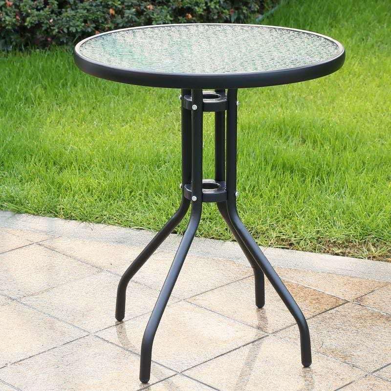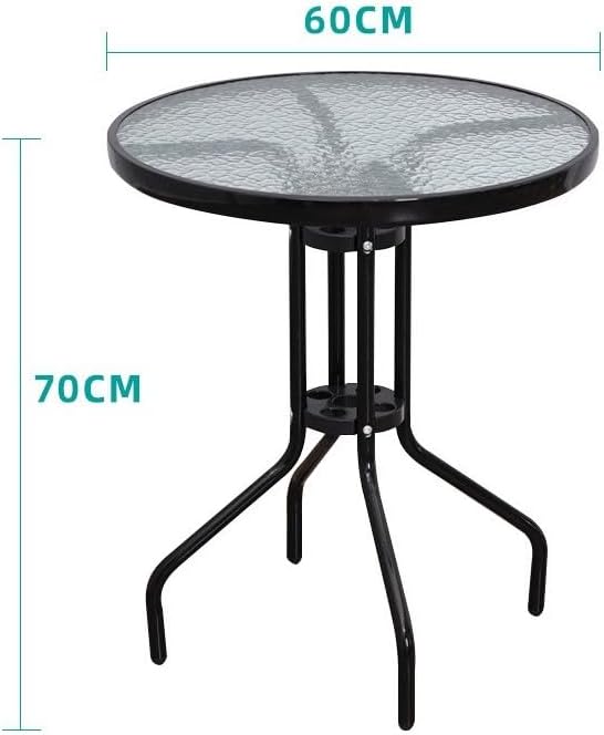 SKY-TOUCH Round Glass Table : Outdoor Patio Table with Waterwave Tempered Glass Outdoor Coffee Table with Metal Frame for Home Patio Backyard Yard Balcony Lawn (60 * 70cm Black)