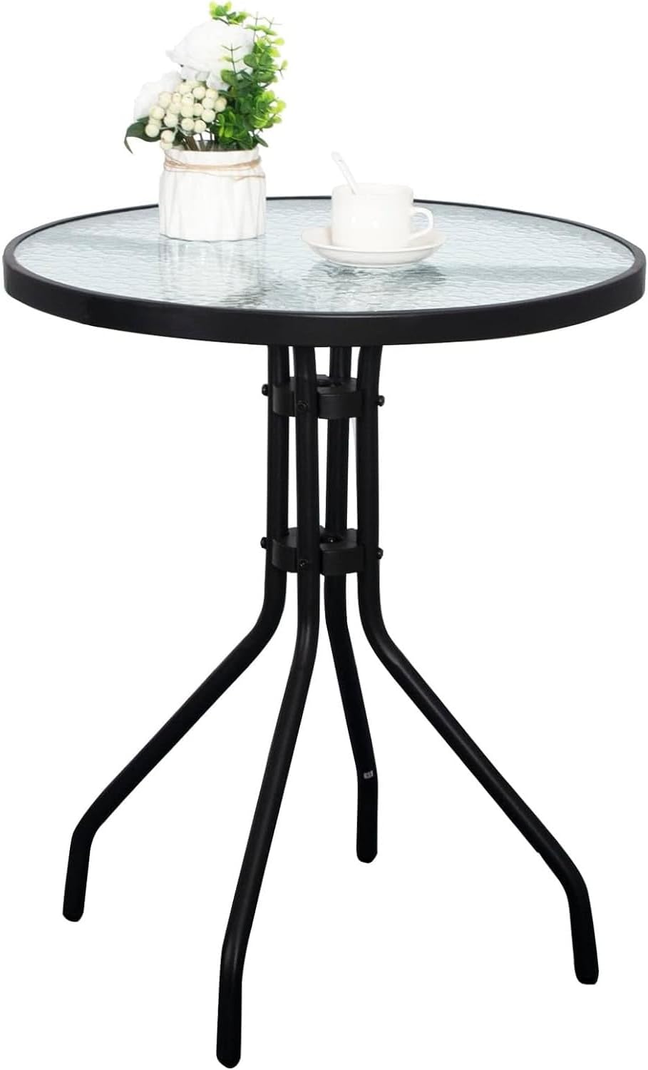 - Stylish and Functional: Featuring a contemporary design with a clear waterwave tempered glass surface and decorative black edge band, this table adds a touch of sophistication to any environment. Its round shape and sturdy steel legs (25mm x 0.9mm) provide stability and style in equal measure.