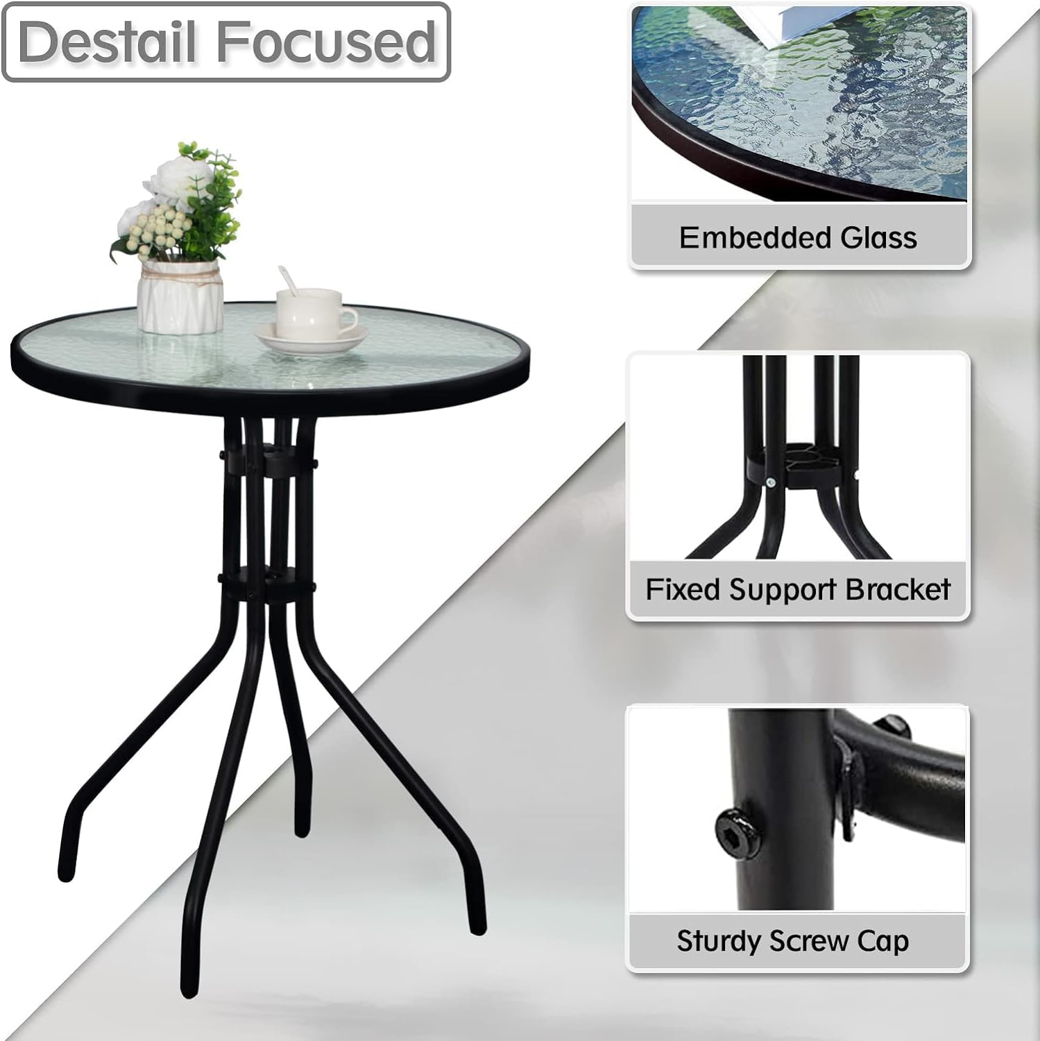 - All-Weather Performance: Engineered to withstand the elements, this table is equipped to handle outdoor conditions with ease. Special materials resist severe weather, ensuring a longer service life, while the powder-coated steel frame protects against rust and corrosion.