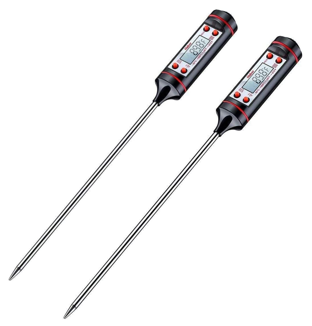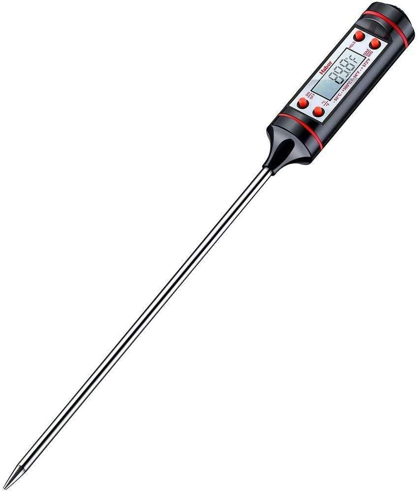 - 【Long Probe】This 5.8 inch Long Probe Food Thermometer keeps you from burning your hands while measuring and helps you detect the core temp of meat; Perfect for turkey, roast lamb, bread making, candy making, boiling water, hot milk and even bath water