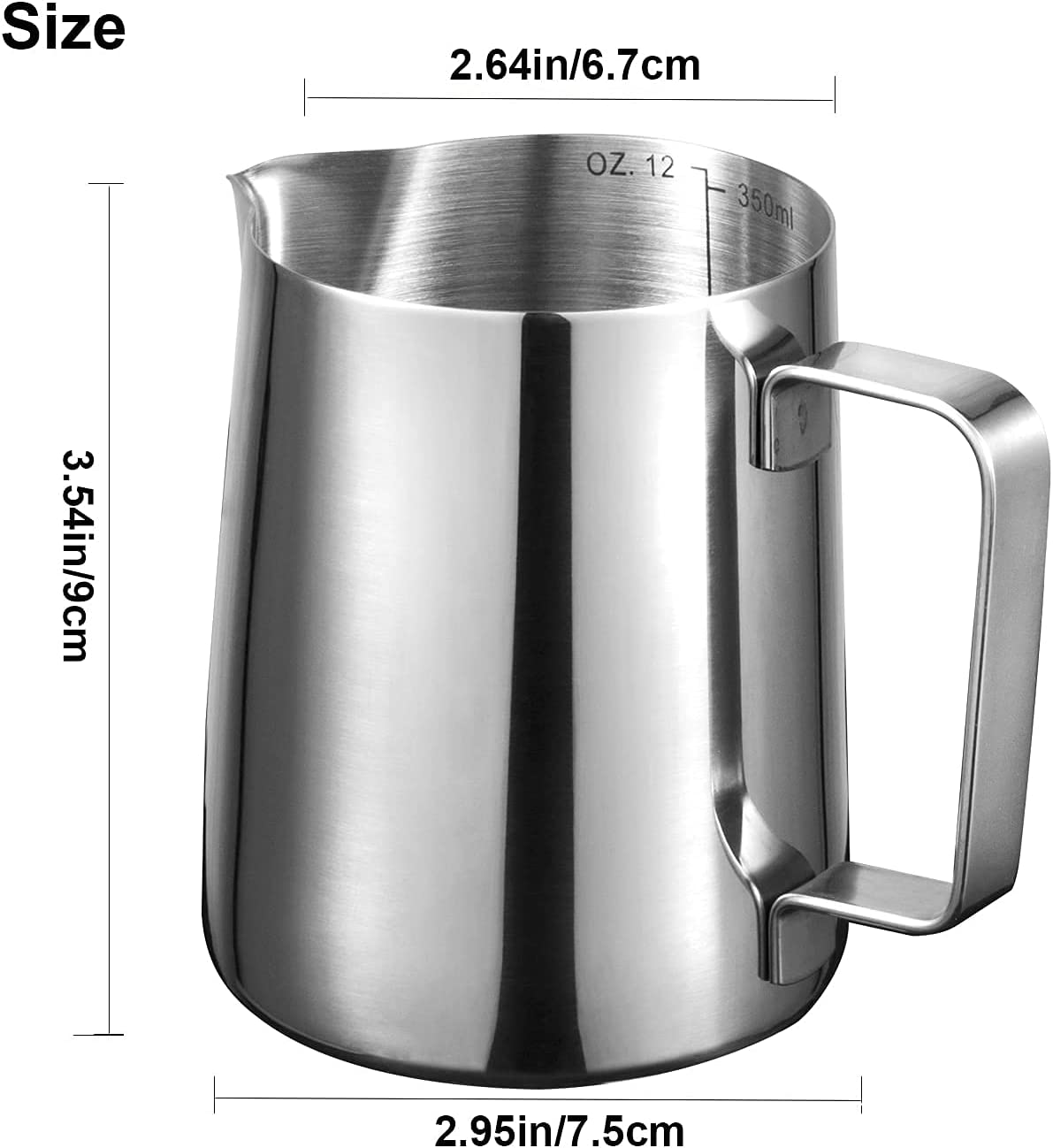 - First,Rate Server: Sized For Everyday Home Use, Our Capacity (350Ml), Stainless Steel Frothing Pitchers Give You Ultimate Control Of How Much Milk Or Cream Each Cup Of Coffee Needs. Imagine Barista Quality Starbucks Coffee Made Fresh In Your Own Kitchen