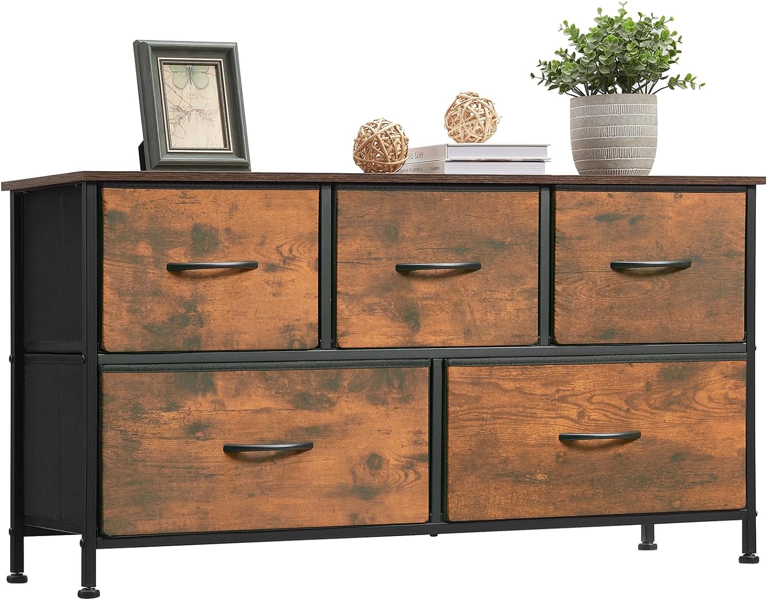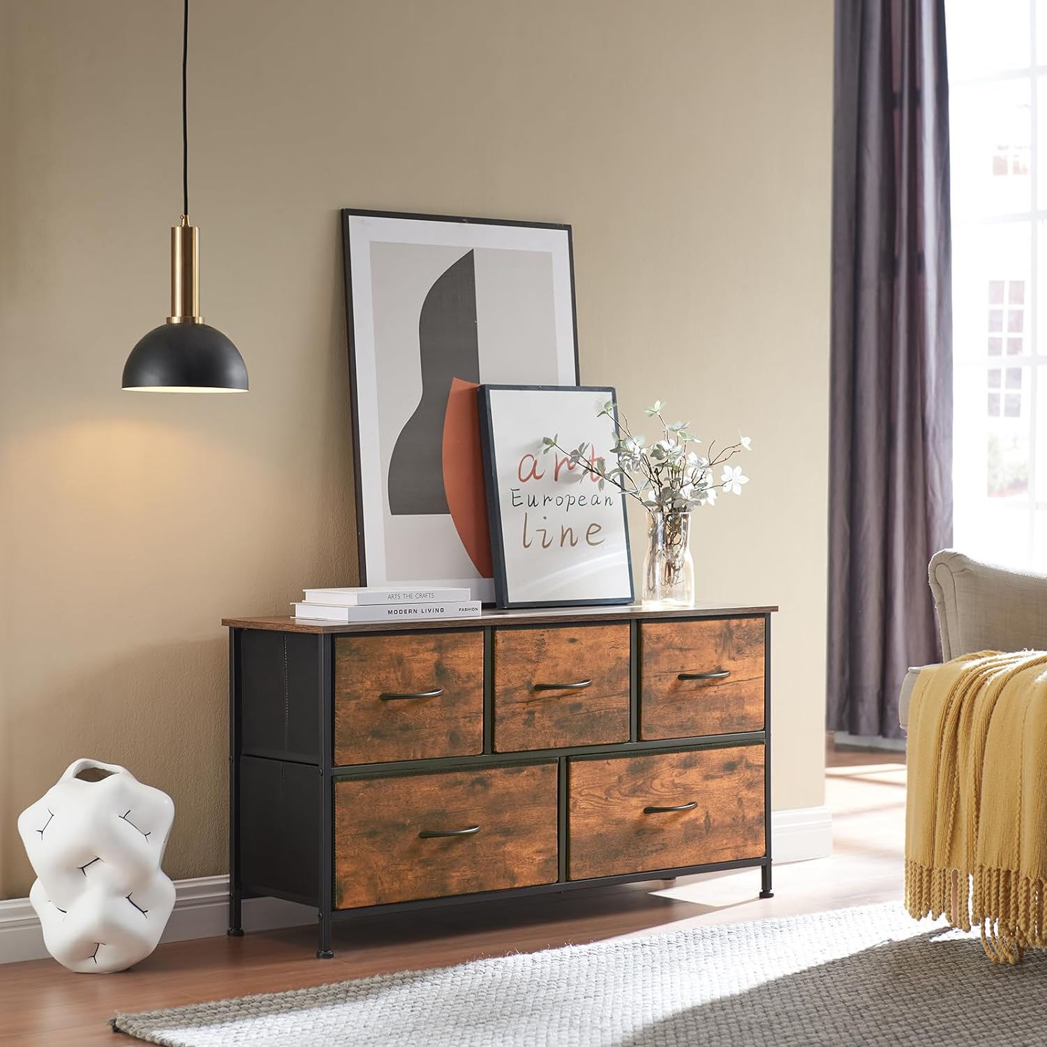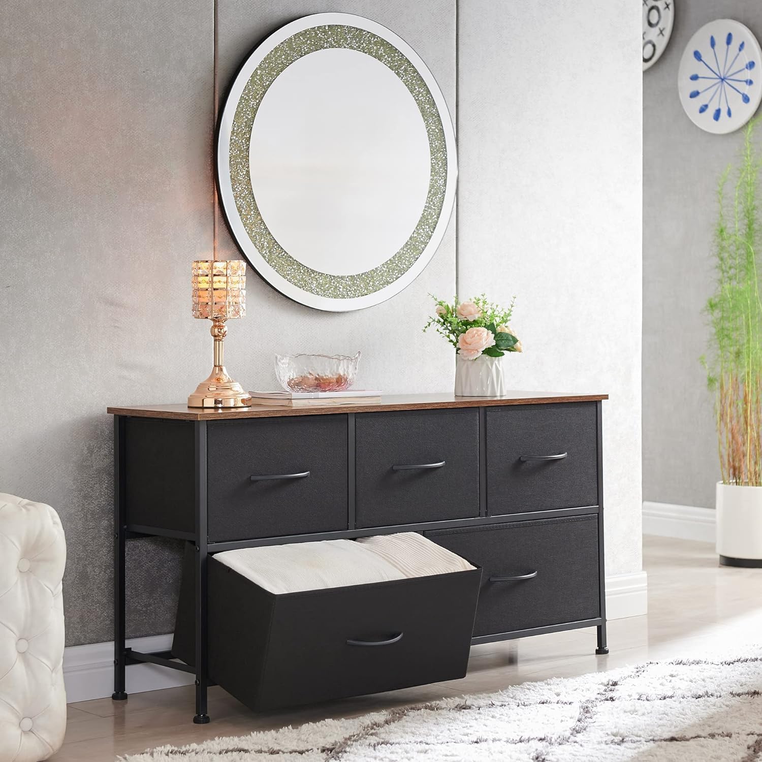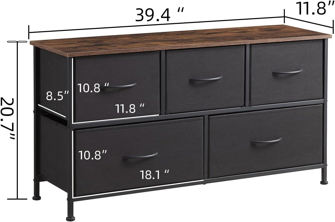 SKY-TOUCH Storage Cabinet : Bedroom Dresser with 5 Drawers Wide Storage Chest with Removable Fabric Bins Storage Organizer Unit for Living Room Entryway Hallway Nursery Kids Room (100*30*52CM Black/Brown/white)