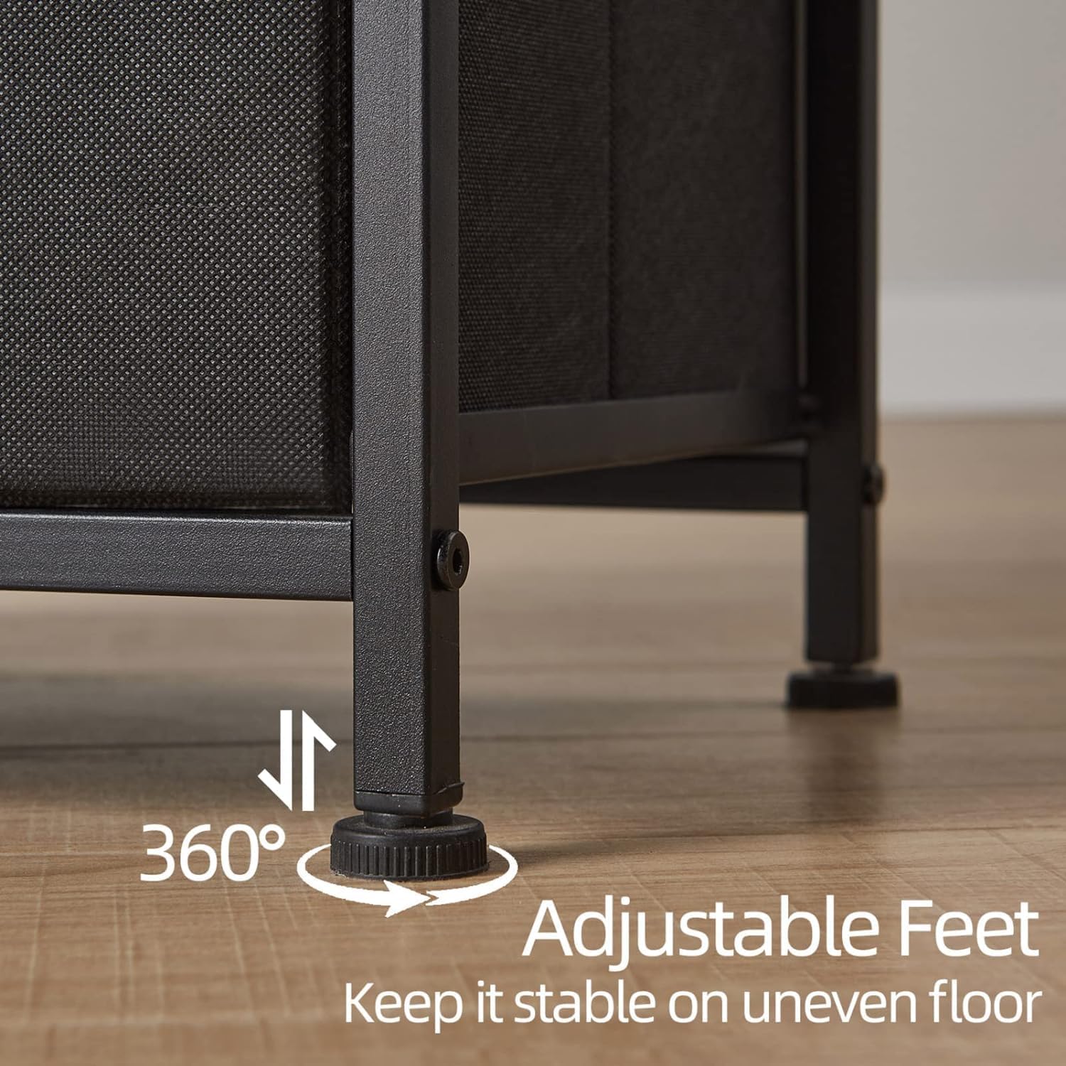 - Eco-Friendly and Durable Design:Crafted with high-quality non-woven material and a smooth, sturdy wood top, the dresser ensures eco-friendly storage without contamination. The robust steel frame provides stable support, 4 adjustable feet protect your floor from scratches.