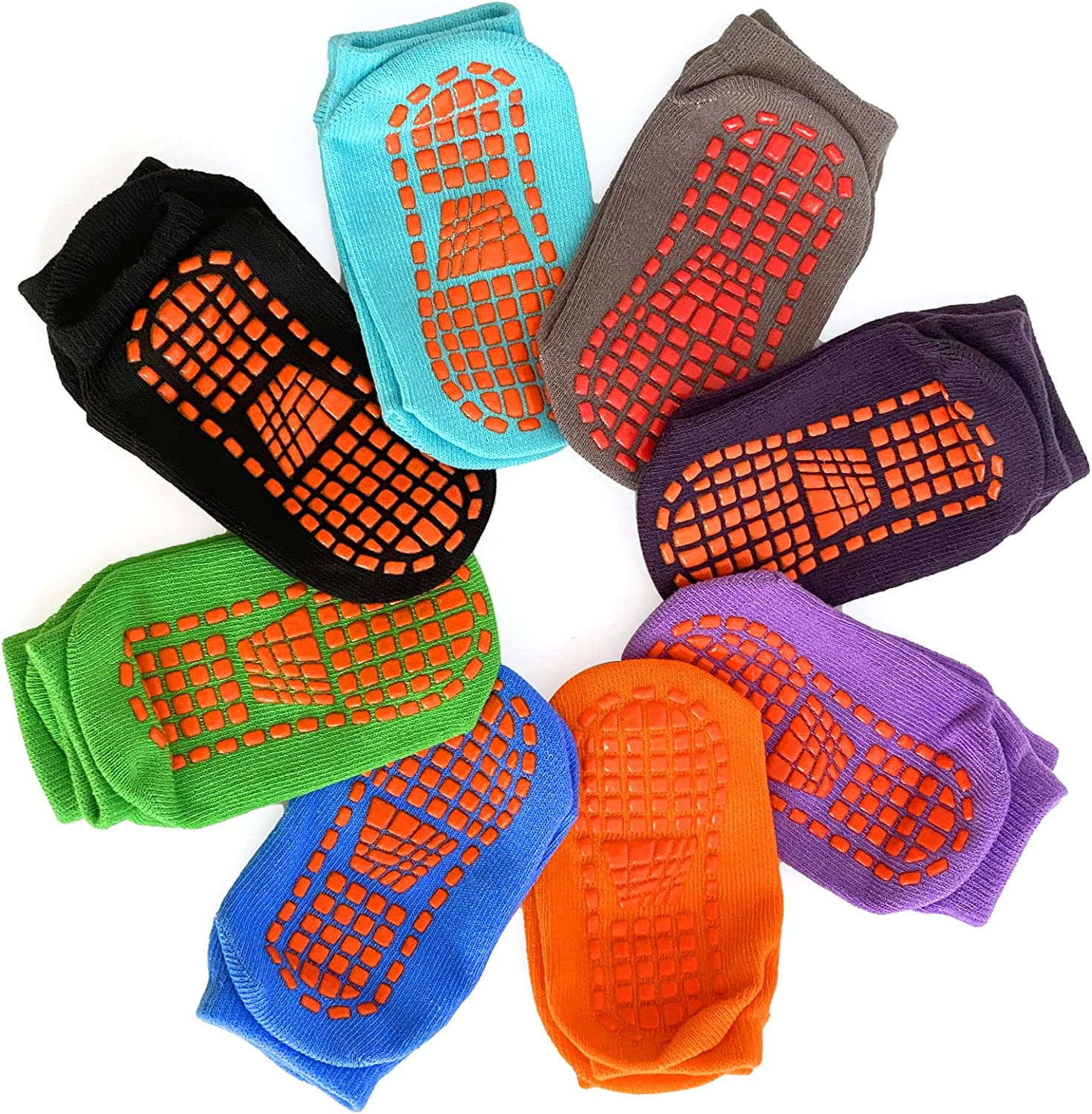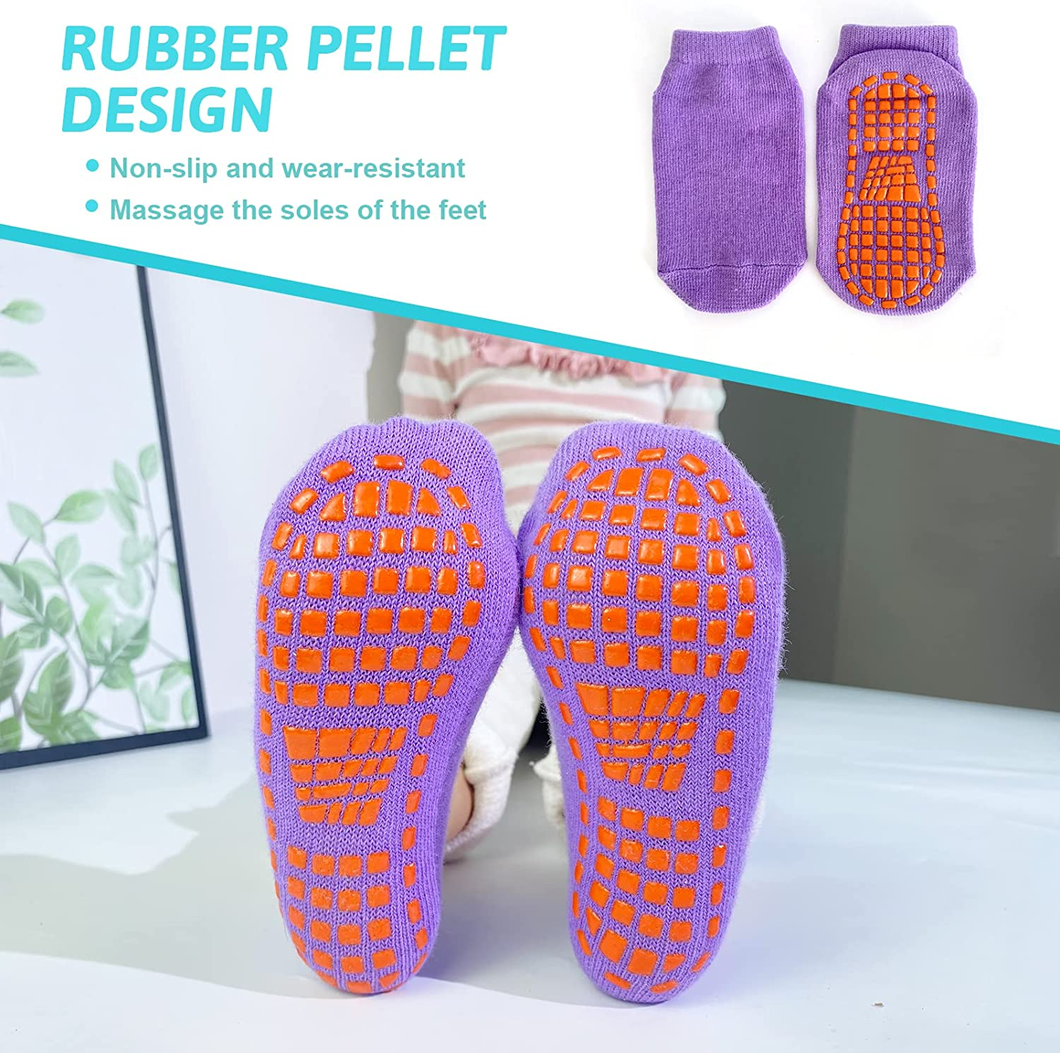 Cozy, Cute, and Safe - These cute cotton non-slip socks for children will add a whole new element to your child’s ability to play safely while being comfortable and stylish. Non Skid Socks for Kids - Non Slip Socks are with extra non-slip silicon dots covers the entire heel to toe provides a perfect balance of cushion and mobility, to keep baby toddler safe from sliding. Soft and Comfortable Design - Grip ankle socks, made of cotton with long fiber, thick and flexible, and the closed-toe fully-covered design protects sensitive skin from dirt, blisters, and germ exposure. Flexible Loop - We've lined our low cut socks with lush terry loops, easy to put them on and don't squeeze foot. Sole length is 12cm/4.7inch, fit 1-3 years toddlers to run around your hardwood floors and slippery stairs. 8 Vibrant Colors - 8 pairs per pack; Green/ Grey/ Sky Blue/ Blue/ Purple/ Navy/ Orange/ Dark Purple. Nonskid grips are perfect for trampolines & walking on slippery floors for your baby girls/boys. |