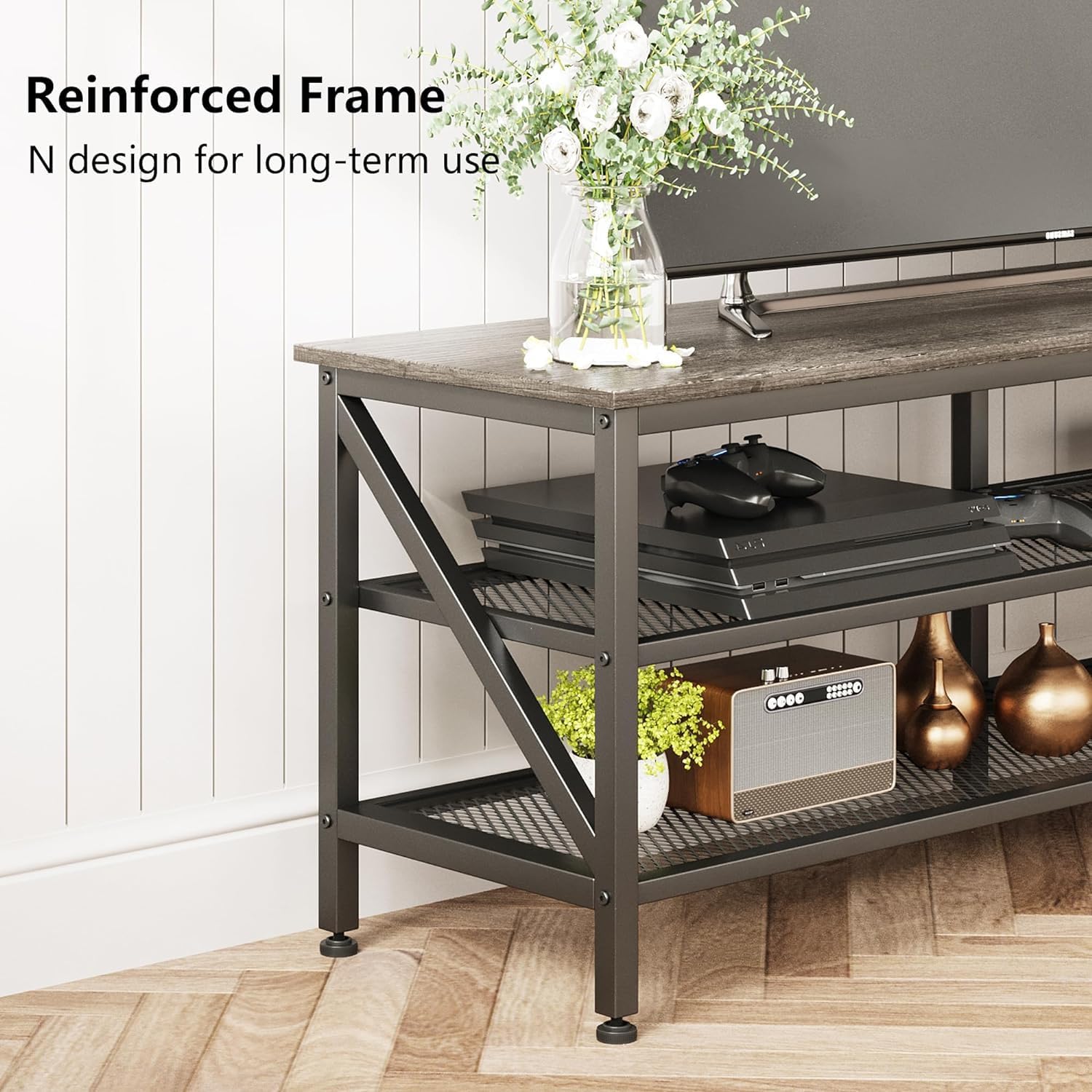 - Ample Storage with 3-Tier Shelves: This TV stand is equipped with 3-tier open shelves, providing ample room for your latest gaming console or other media equipment. The open design allows for easy access and adds a contemporary touch to your entertainment setup.