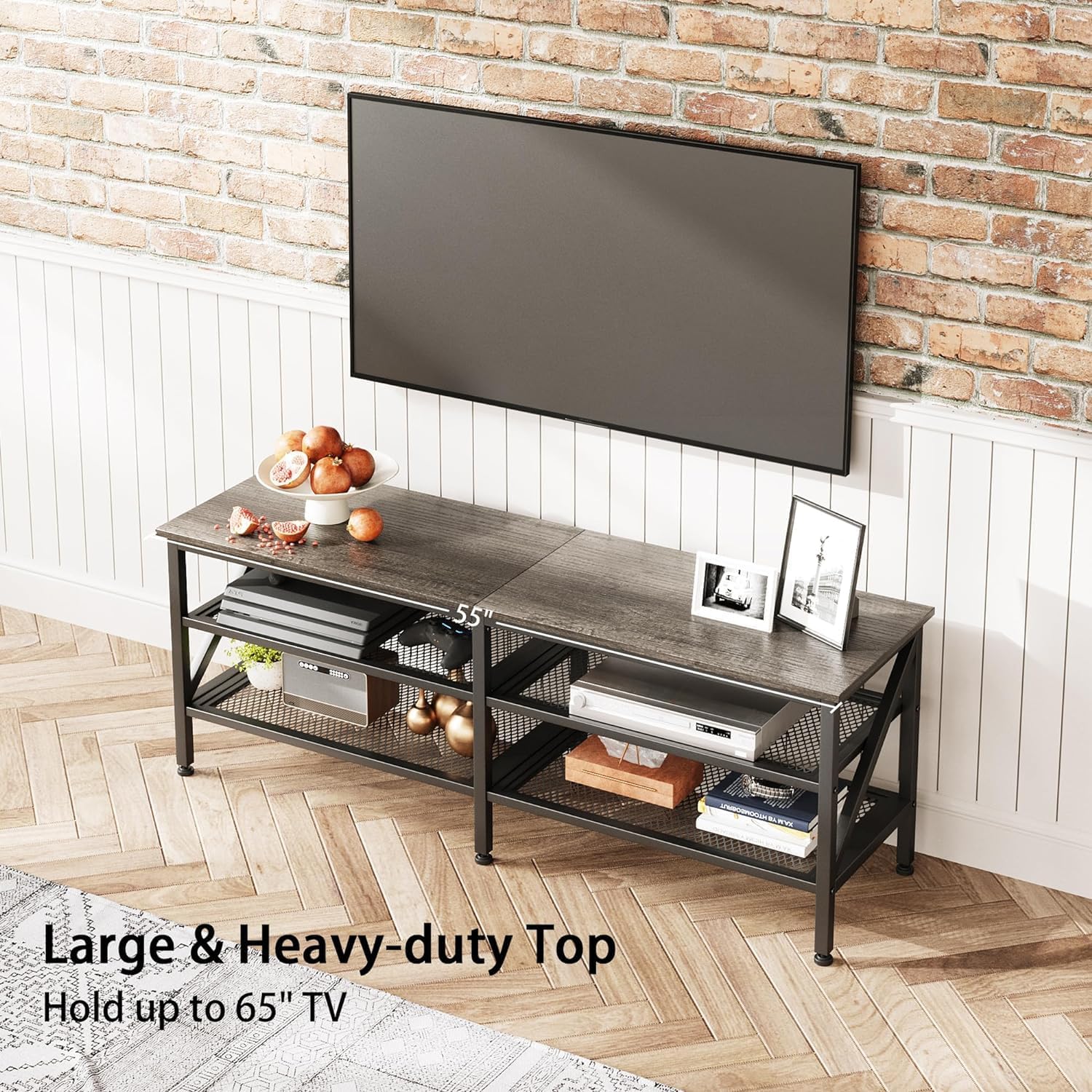 SKY-TOUCH TV Stand : Modern TV Table Wide TV Entertainment Center with Storage Shelves Sturdy Wooden TV Console Table with Metal Frame for Living Room (160 * 40 * 50CM Grey Oak)
