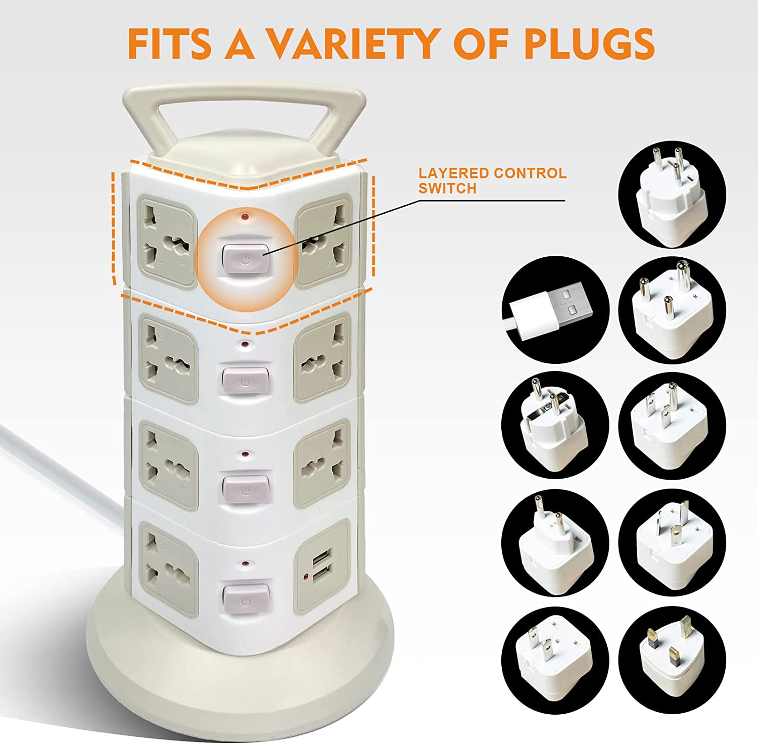 SKY-TOUCH Vertical Tower Power Strip Universal with 14 Charging Multi Plugs 4 USB Ports, Electric Charging Station Surge Protector