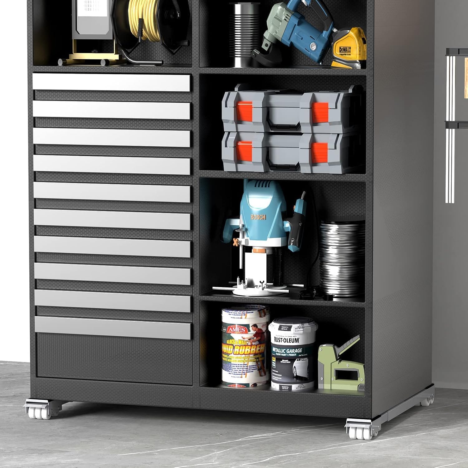 - Brake Bases:The mobile roller comes with a non-slip mat to make the furniture more stable when moving. One end of the roller has a locking brake that improve the stability and safety of the machine base when not use.