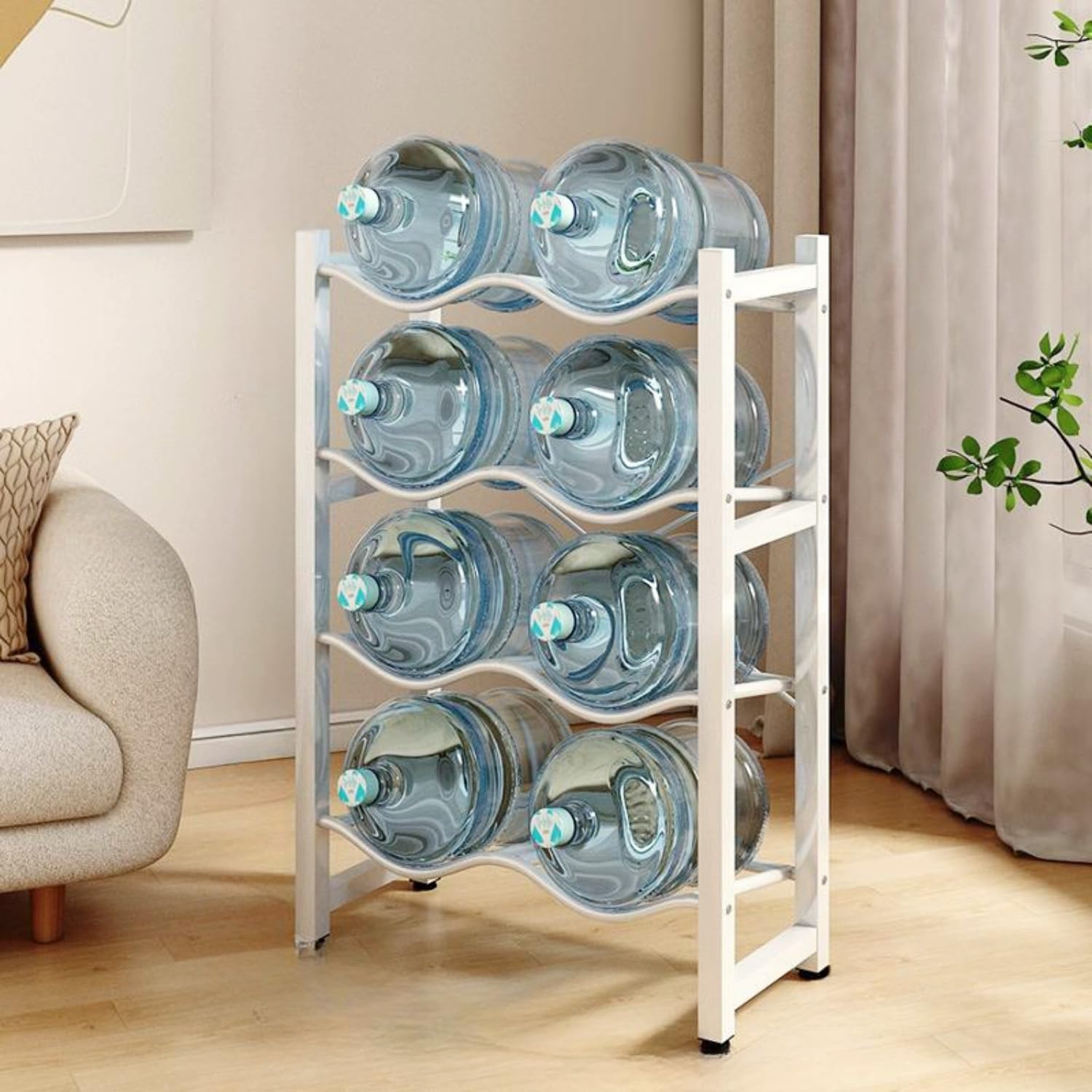- Water bottle rack fit for any room with its modern and simple design, the water bottle shelf organizer can be used at kitchen, breakroom, office, classroom. the metal water cooler rack can hold all of your water bottle jugs, keep your home neat and clean, save your floor space.