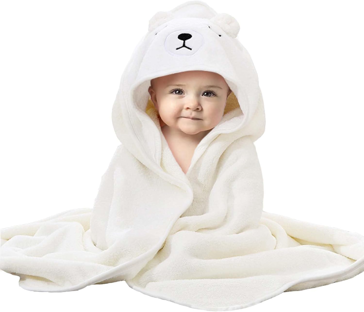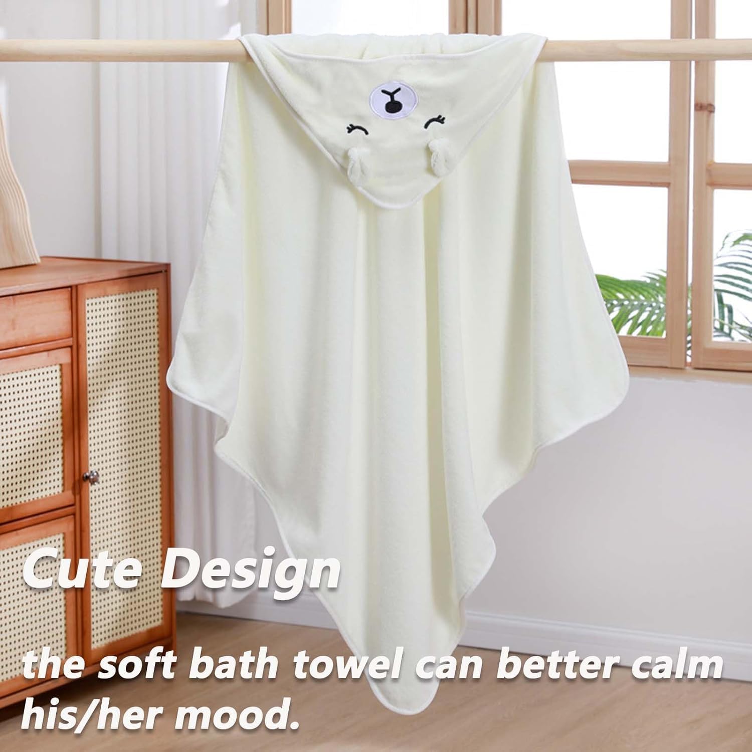 - 【Cute Design】: This hooded baby towel is designed with cute animals, the hooded towel baby with a unique hood of white bear, which makes your baby more cute, and the soft bath towel can better calm his/her mood.